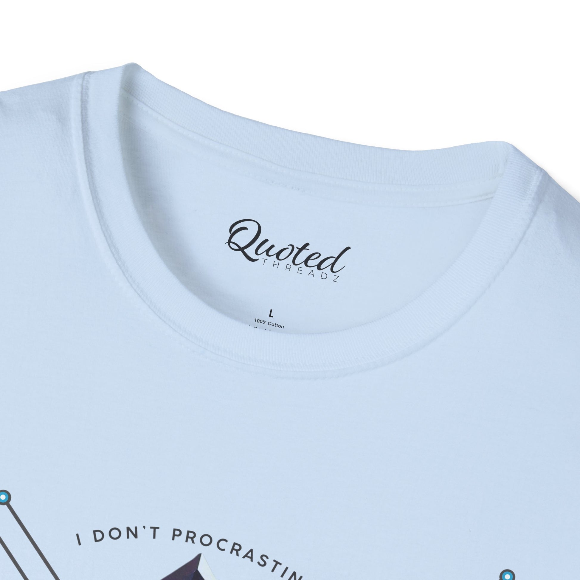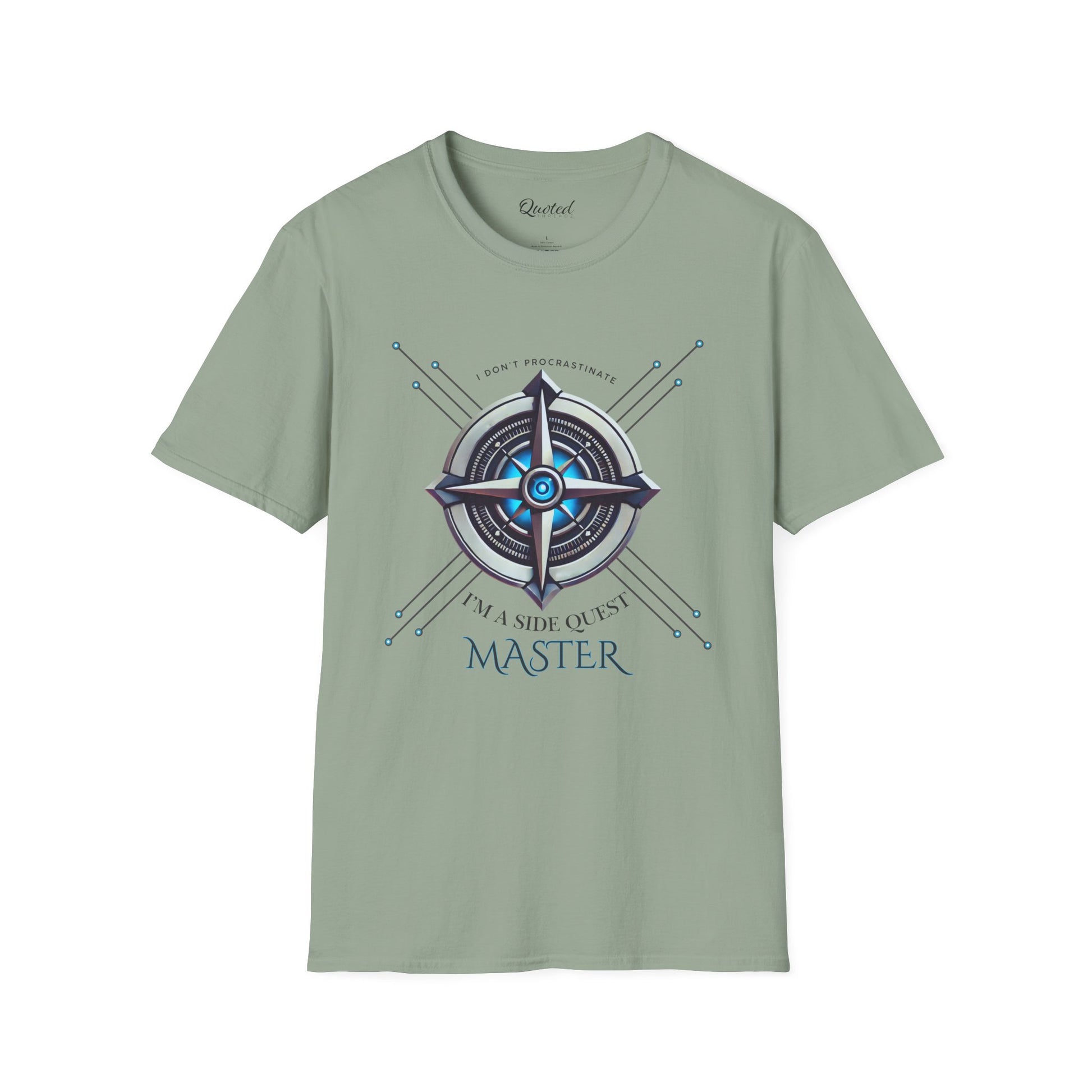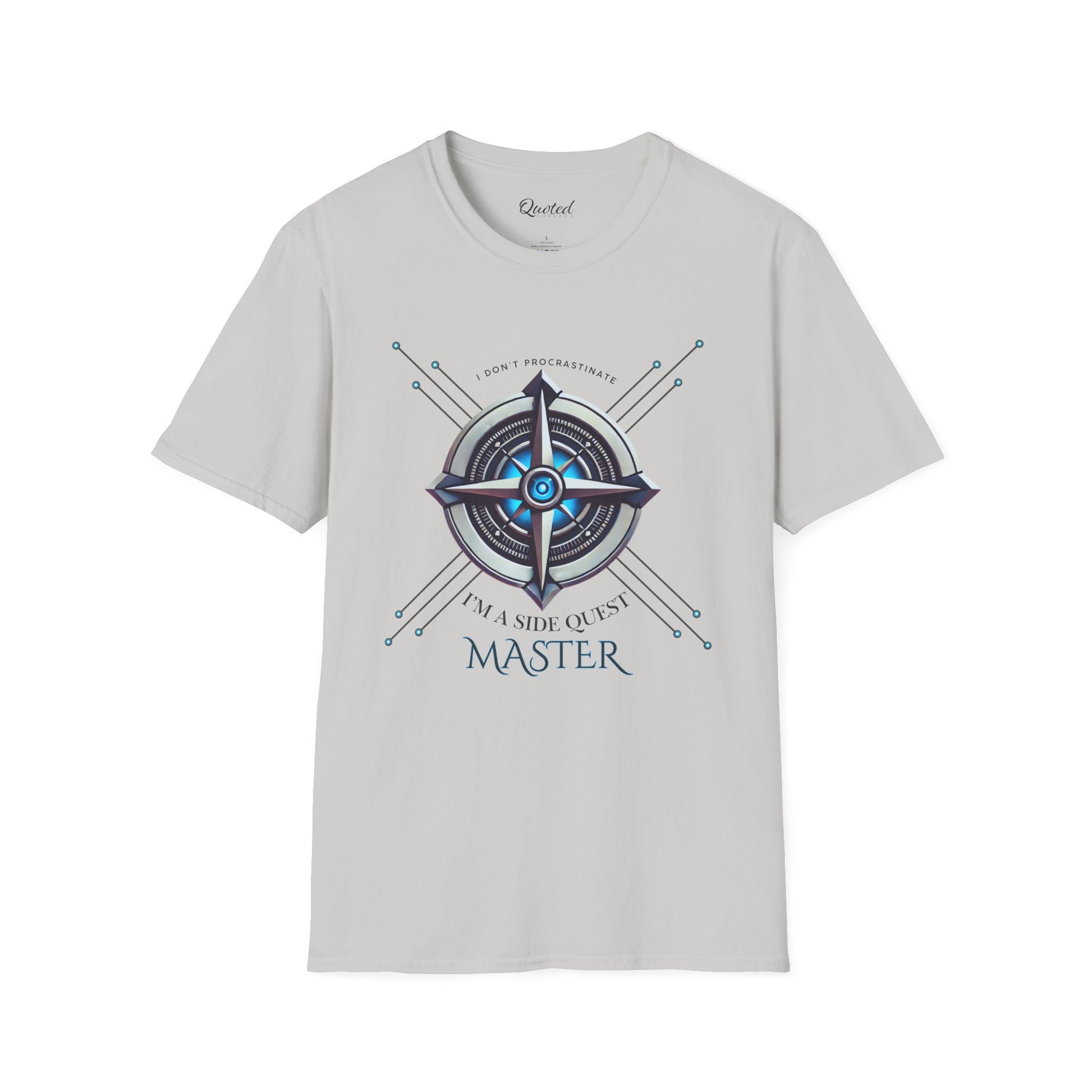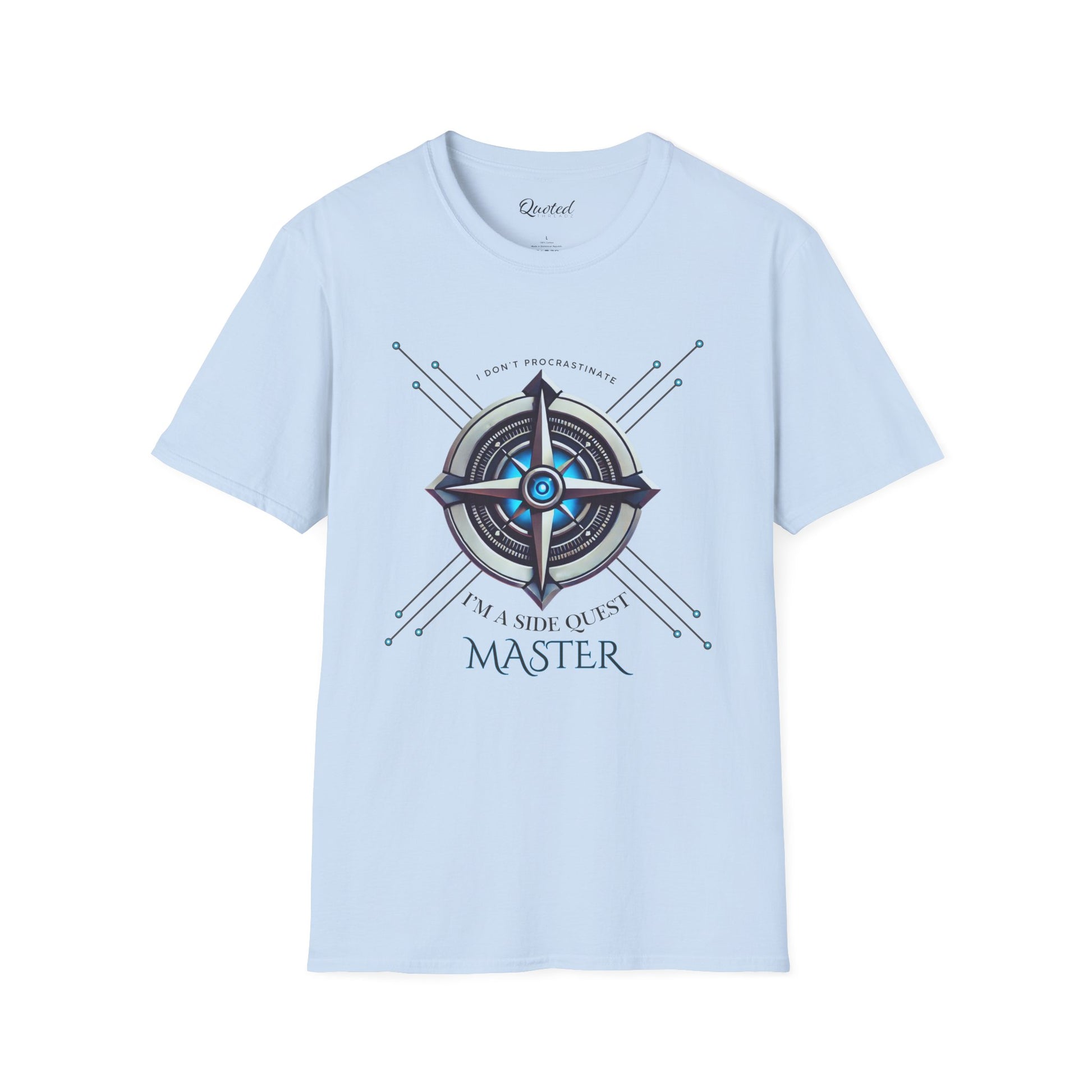 'I don’t procrastinate, I am a side quest master,' this tee is perfect for adventurers, gamers, and side-quest enthusiasts. Made for those who embrace life’s journeys, this geometric and futuristic design pops on high-quality fabric—ideal for casual wear or gifting. Available now at Quoted Threadz!"