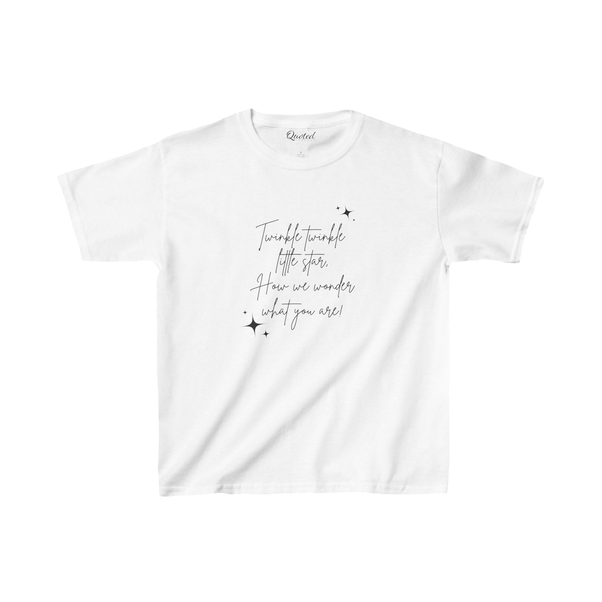 ✨ Wondering about your little star? The whole family can share the excitement with the our super-soft unisex kids cotton tee featuring "Twinkle Twinkle Little Star, How We Wonder What You Are!" Perfect for your magical gender reveal moment.