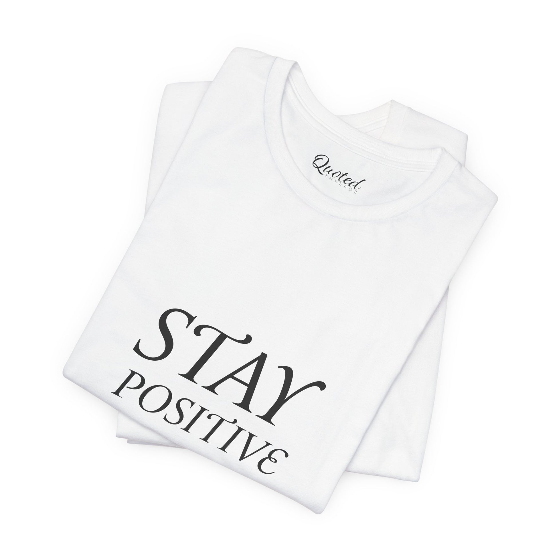 Stay inspired and spread positivity with our "Stay Positive" t-shirt. Crafted from premium cotton for ultimate comfort, this classic tee features a simple yet powerful message in clean typography. The minimalist design paired with an uplifting message makes it perfect for everyday wear. Whether you're headed to yoga class or meeting friends for coffee, let your outfit remind you and others to keep looking on the bright side.